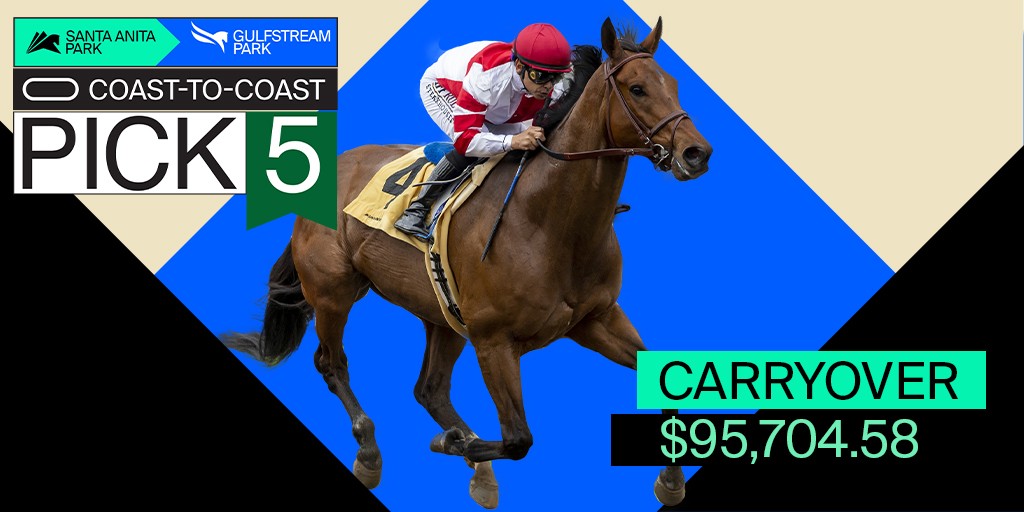 A pair of carryovers on Friday afternoon start the racing week in Southern California, as well as bring added excitement to the start of Pegasus Weekend at Gulfstream Park. A $19,498 carryover in the Sunset Six and $95,704 in the Coast-to-Coast Pick 5 have me champing at the bit with the massive day to follow on Saturday. Here are my thoughts on the Coast-to-Coast Pick 5 sequence, which for those who forget, has a $1 minimum, 15% takeout, and is for retail players only.